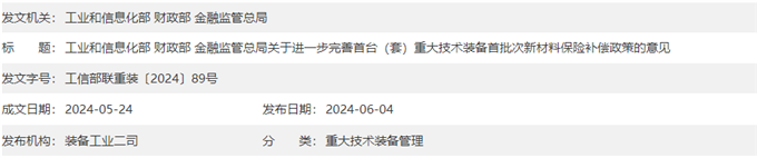 【政策】三部门关于进一步完善首台(套)重大技术装备首批次新材料保险补偿政策的意见